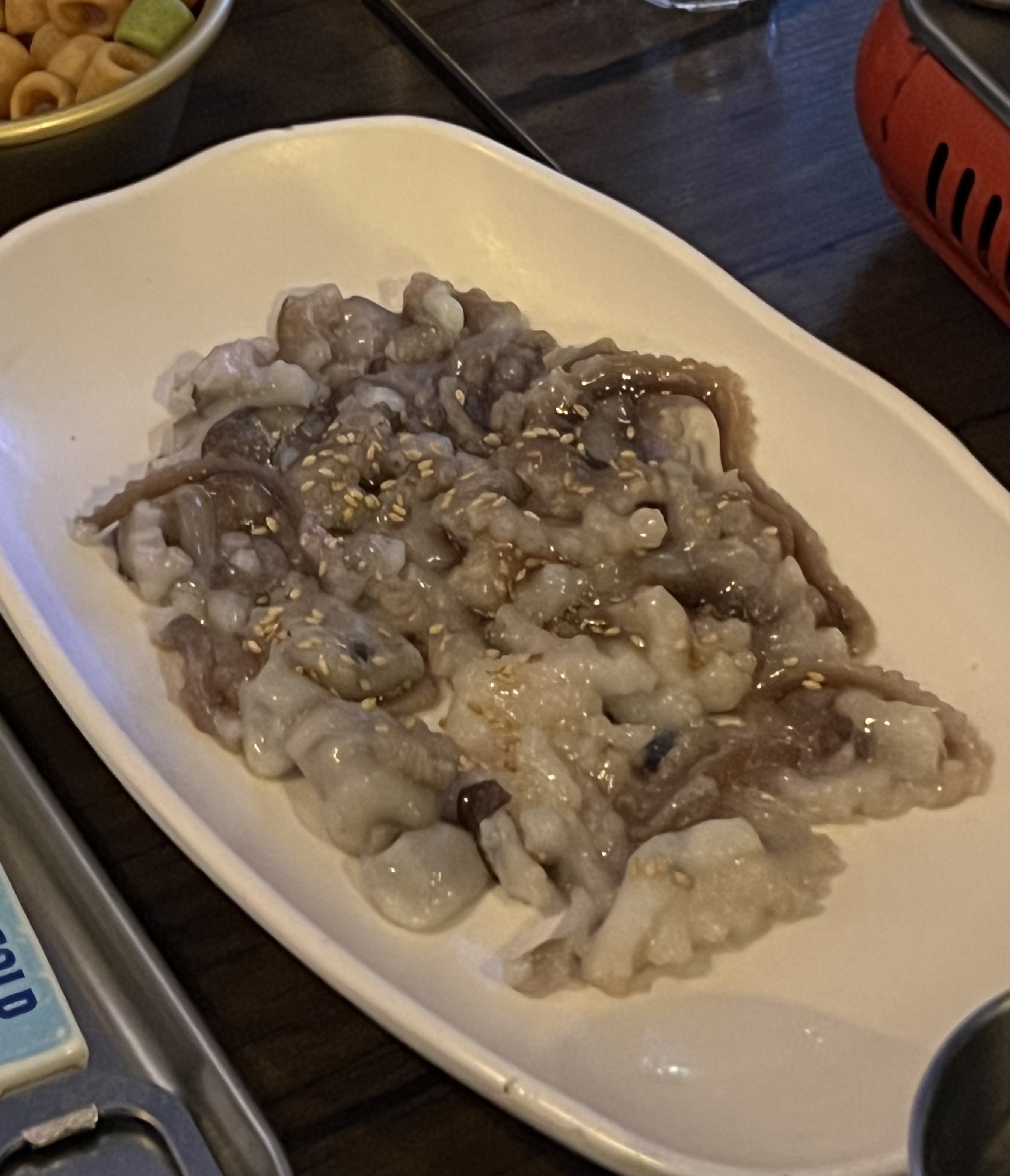 탕탕이를 시키고 종지에 담긴 참기름이 먼저 나왔는데
