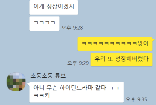 ~하는 교훈을 얻고 또 성장했다. 성장해버렸다. 성장쟁이다. 이놈의 성장판은 언제 닫히려는지.